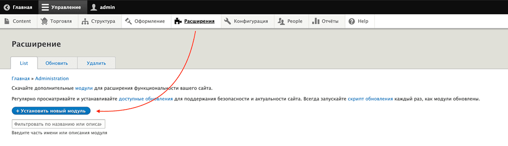 - На открывшейся странице нажмите кнопку Добавить модуль в правом верхнем углу.