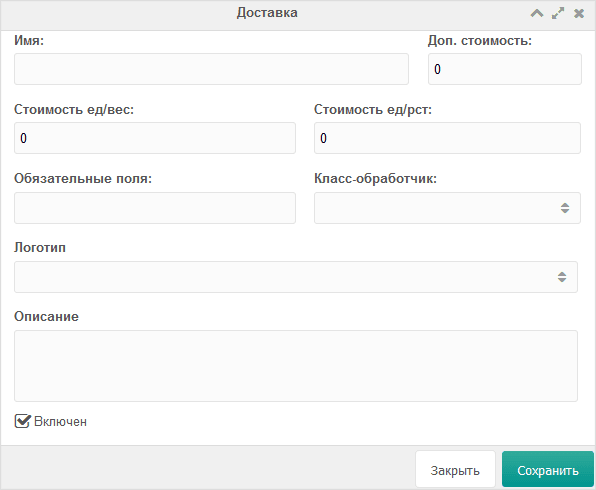 | Включить для способов доставки | Выберите способы доставки, если они доступны. |