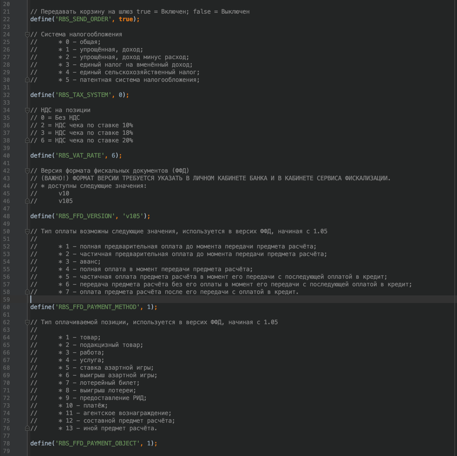 | RBS_VAT_RATE | Налоговая ставка по умолчанию. Возможные значения: