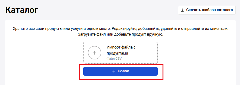 Раздел Каталог товаров позволяет быстро выбирать товары при создании счета на оплату. Чтобы попасть в раздел Каталог товаров, нажмите