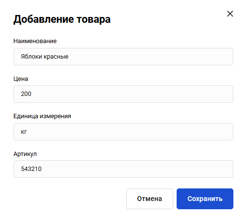 Откроется форма для заполнения информации о товаре.