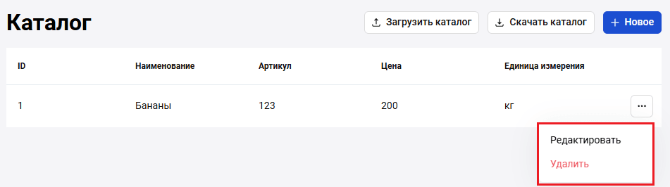 Помимо добавления товара в каталог, вы можете, в случае необходимости, внести изменения в параметры добавленного товара, либо же и вовсе удалить его из каталога. Для этого необходимо навести курсор на строку товара в списке и нажать соответствующую кнопку: