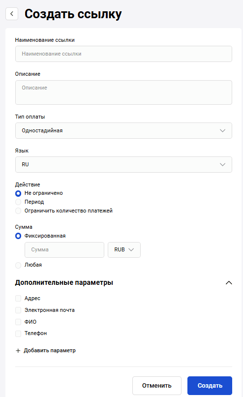 Дополнительные параметры