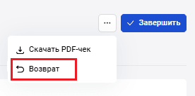 Чтобы отменить платеж, на странице информации о транзакции нажмите кнопку Возврат.