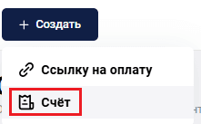 - Перейдите в раздел Счёт на оплату личного кабинета, выбрав Счёт на оплату в левом меню. Вы также можете открыть этот раздел, нажав в верхней части личного кабинета кнопку Создать и выбрать Счёт.