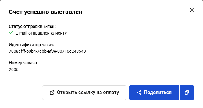 Вы можете просмотреть отправленную клиенту платежную страницу, нажав на кнопку Открыть ссылку на оплату.