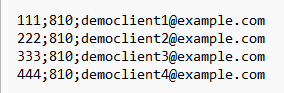 Пример содержимого файла (сумма операции, коды валюты, электронная почта):